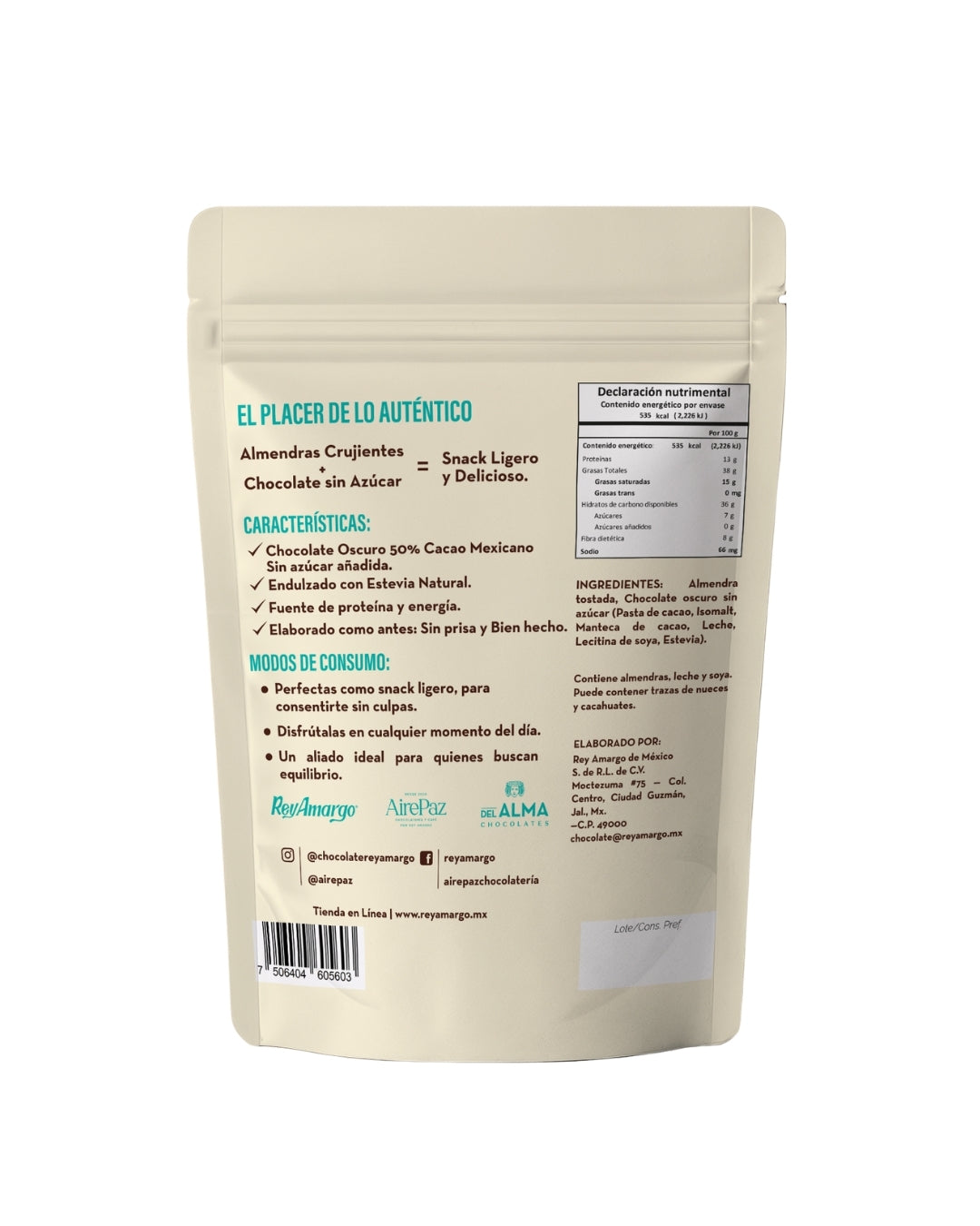 Contiene almendras, leche y soya. Puede contener trazas de nueces y cacahuate.