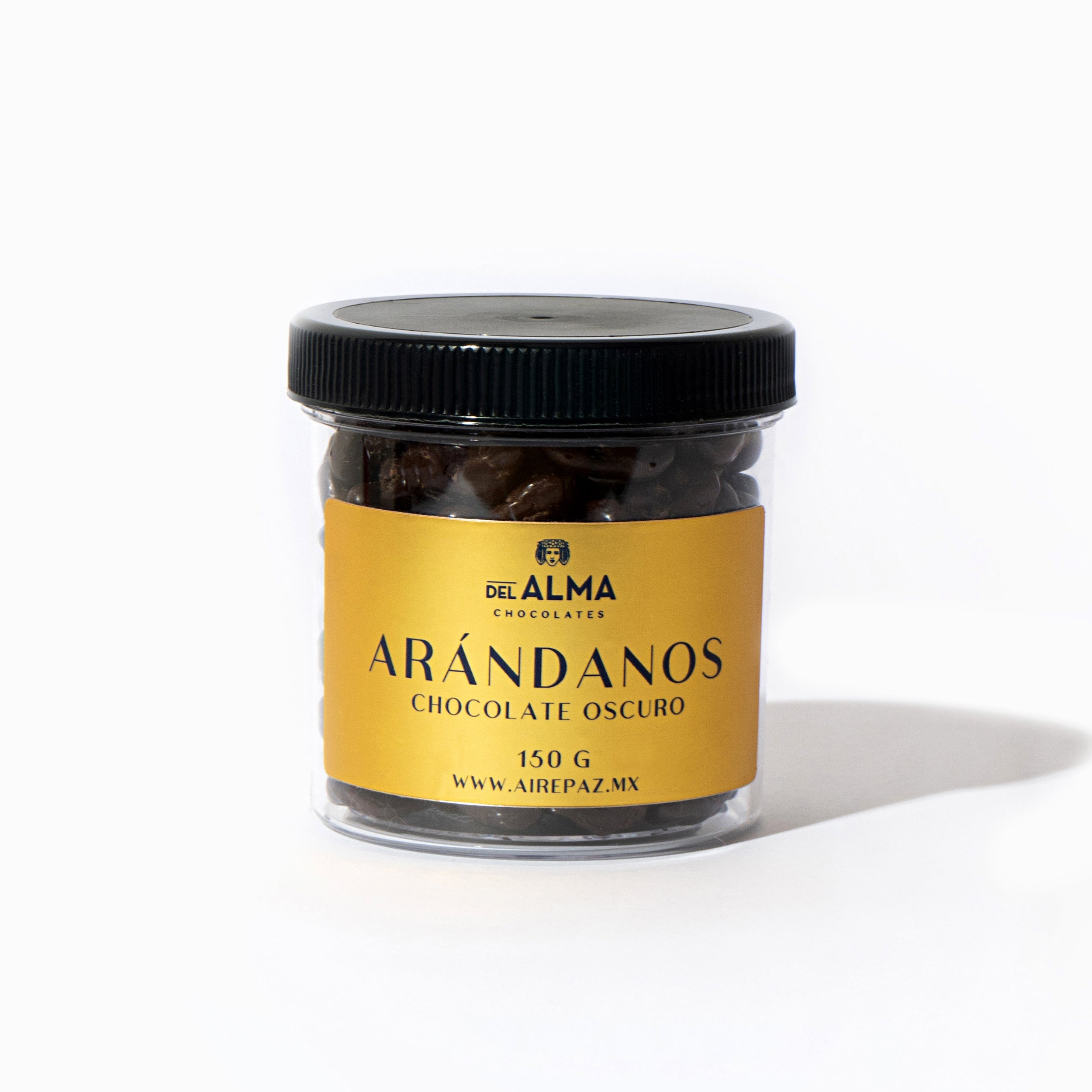 Deliciosos arándanos deshidratados cubiertos con nuestro Chocolate Oscuro Del Alma 55% cacao, teniendo como resultado unas finas piezas de chocolate con un sabor natural inigualable.