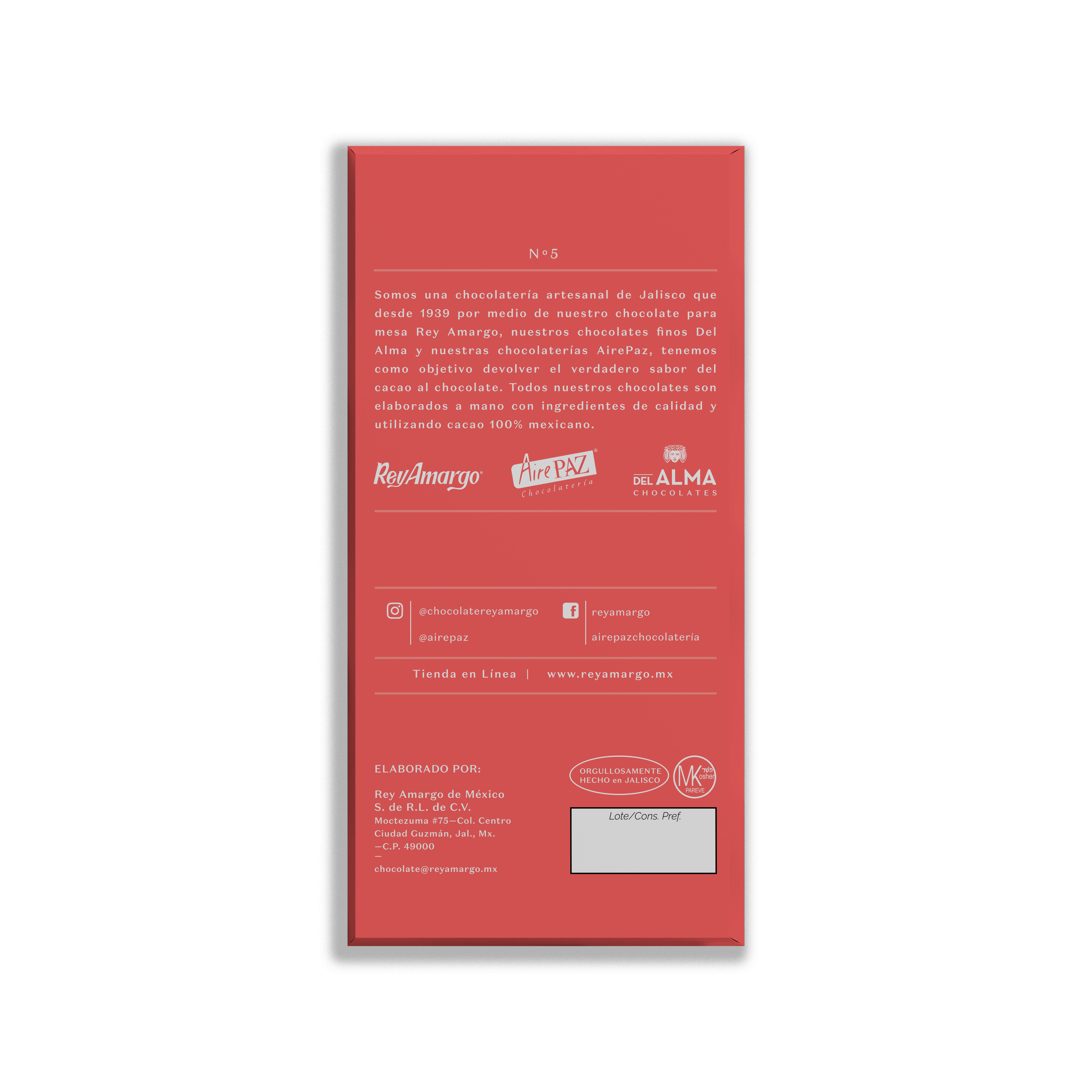 Ingredientes: Azúcar mascabado, manteca de cacao, cocoa, pasta de cacao, almendra, vainilla y sal.