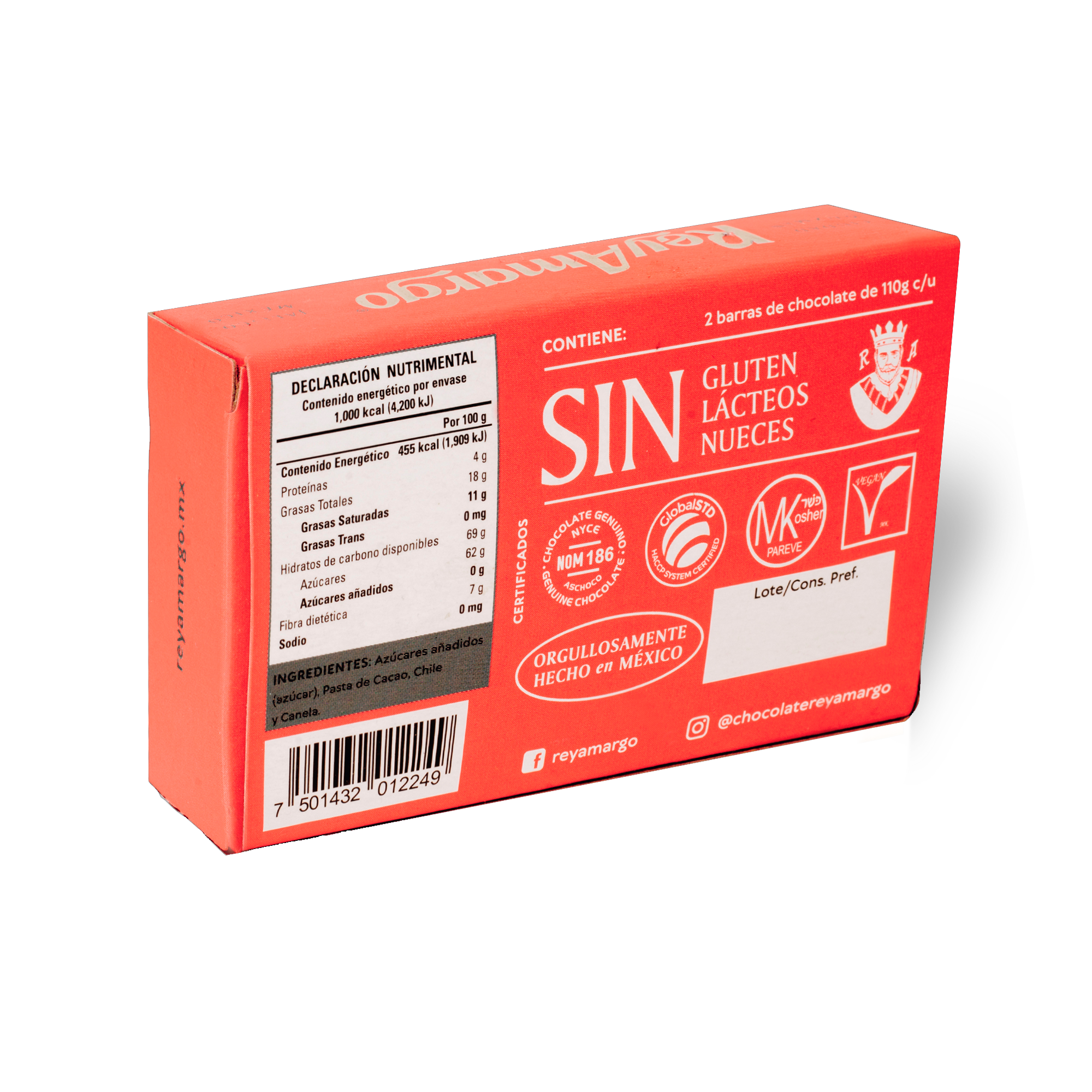 Rey Amargo Edición Chile te permite disfrutar con un ligero picor de dos sabores característicos de la cultura mexicana, cacao y chile.