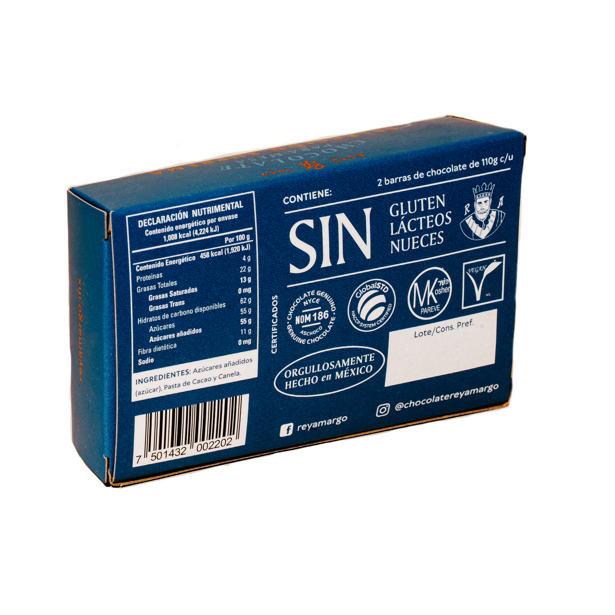 Ingredientes: Azúcar, Pasta de Cacao y Canela.