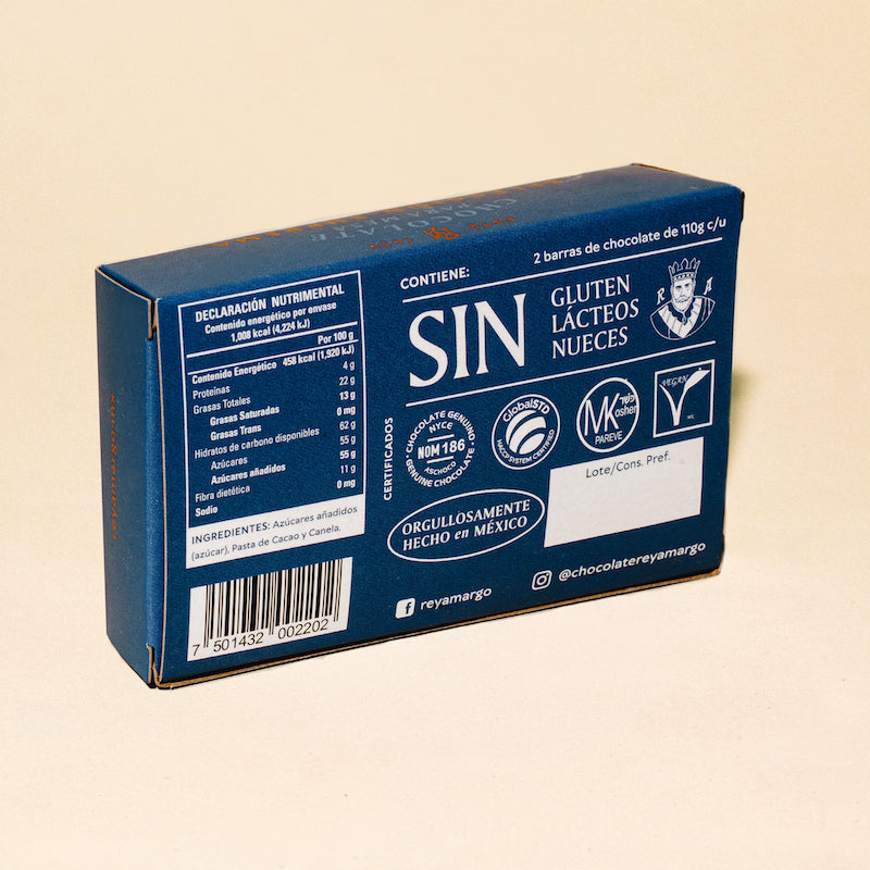 Chocolate para mesa en tabletas con 42% cacao mexicano molido en piedra después de un tostado especial, elaborado totalmente a mano.